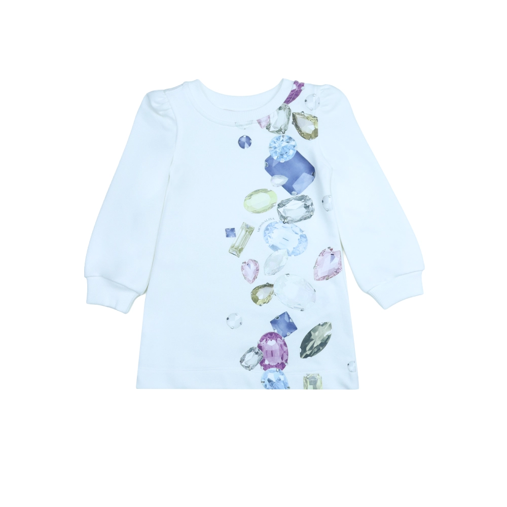 Girls Gem-Print Full Sleeve White Dress