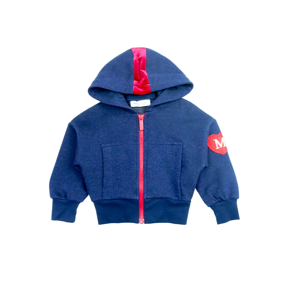Stylish this Monnalisa tracksuit set is designed to bring comfort with a touch of glamour. Crafted in soft cotton-jersey with a hint of lurex, the navy blue set shimmers gently with movement, making it both cozy and eye-catching. The zip-up hoodie features an attached hood with bow ribbon detailing and a charming heart logo patch, adding a signature feminine touch. Long sleeves and a front zip closure make layering easy and practical. The matching sweatpants are designed with an elasticated waistband, ribbed trims, and side pockets for everyday comfort and functionality. Perfect for casual days, travel, or relaxed outings.
