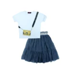 Boys Blue logo Print Shirt & Navy Blue Cargo Shorts Set