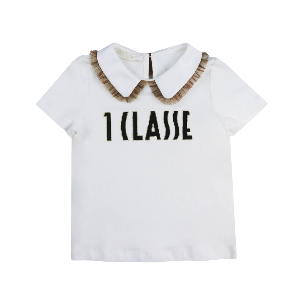 The set includes a black logo-embroidered T-shirt and a matching skirt, both crafted from soft, breathable premium cotton for all-day comfort. The T-shirt features contrast collar trims, front logo embroidery, and a rear button closure, while the skirt is shaped with a stretchy waistband and elastic for unrestricted movement and easy dressing. Ribbed knit details and gold-tone metal hardware add subtle luxury, making this set perfect for casual outings, playdates, or stylish everyday wear.