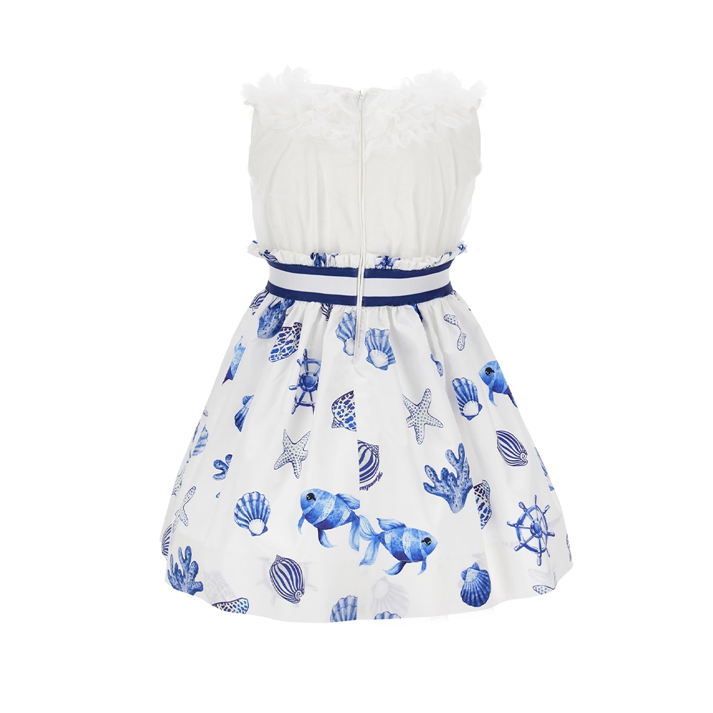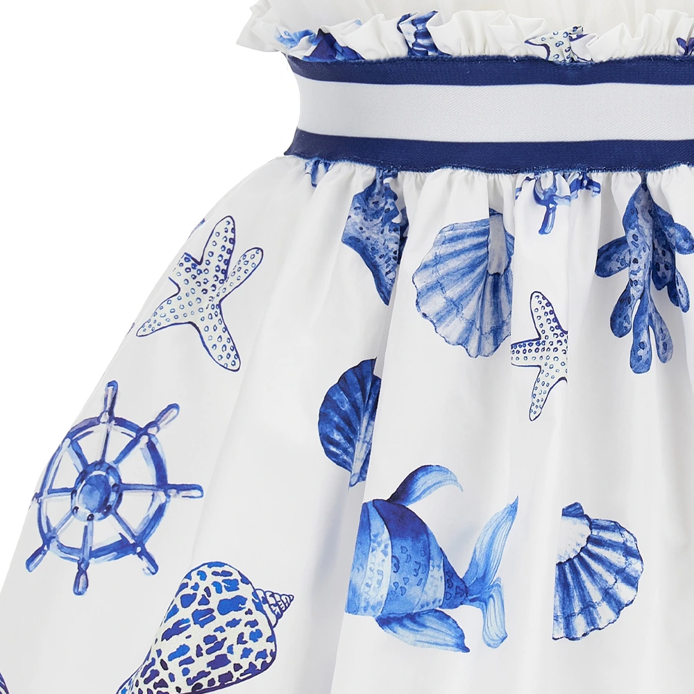 Boys White & Navy Blue Logo Cotton Shirt Set