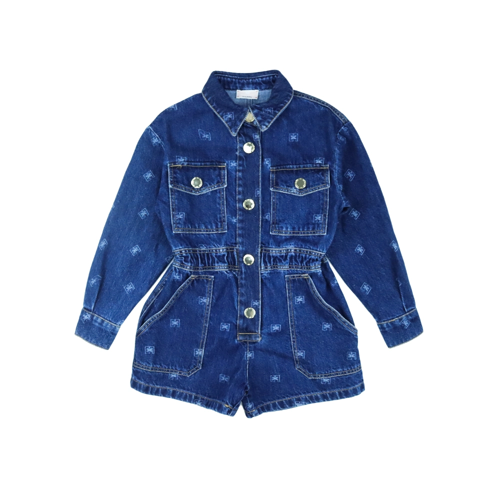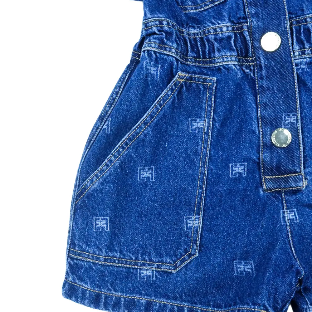 Girls Monogram Denim Jumpsuit
