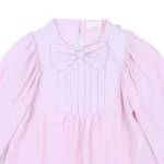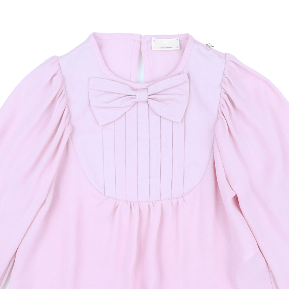 Delicate and effortlessly elegant, this MONNALISA dress is designed to add a refined touch to any little wardrobe. Crafted in a soft pastel pink hue, it features a charming bow detail at the front with subtle pleated accents for a classic finish. The gently puffed long sleeves and gathered cuffs create a graceful silhouette, making it perfect for special occasions or elevated everyday wear.