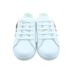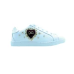 Make a bold statement with these Dolce & Gabbana Portofino Sacred Heart sneakers. Crafted in Italy from premium white calf leather, this iconic design blends timeless style with striking detailing. The classic Portofino silhouette is elevated with Sacred Heart embellishments and stud accents, adding a distinctive edge to the clean, minimalist profile. Featuring a secure lace-up fastening and a durable rubber outsole, these sneakers offer both comfort and standout appeal. Subtle logo details complete the look with signature refinement.