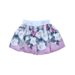 Create an elegant and playful look with this charming Monnalisa girls’ T-shirt and skirt set. The white T-shirt is made from soft cotton jersey and designed with puffed sleeves for a sweet silhouette. A delicate pink rose print is enhanced with sparkling glitter details, while the Monnalisa logo in rhinestones adds a refined designer finish. The outfit is paired with a stunning rose-print pleated skirt, featuring a luxurious satin finish with an ombré effect for added depth and elegance. Designed in an A-line shape, the skirt is fully pleated and lined with soft tulle for volume and comfort, and finished with a concealed rear zip fastening. Perfect for special occasions or stylish daytime wear.