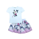 Girls Rose-Print T-Shirt & Pleated Skirt Set