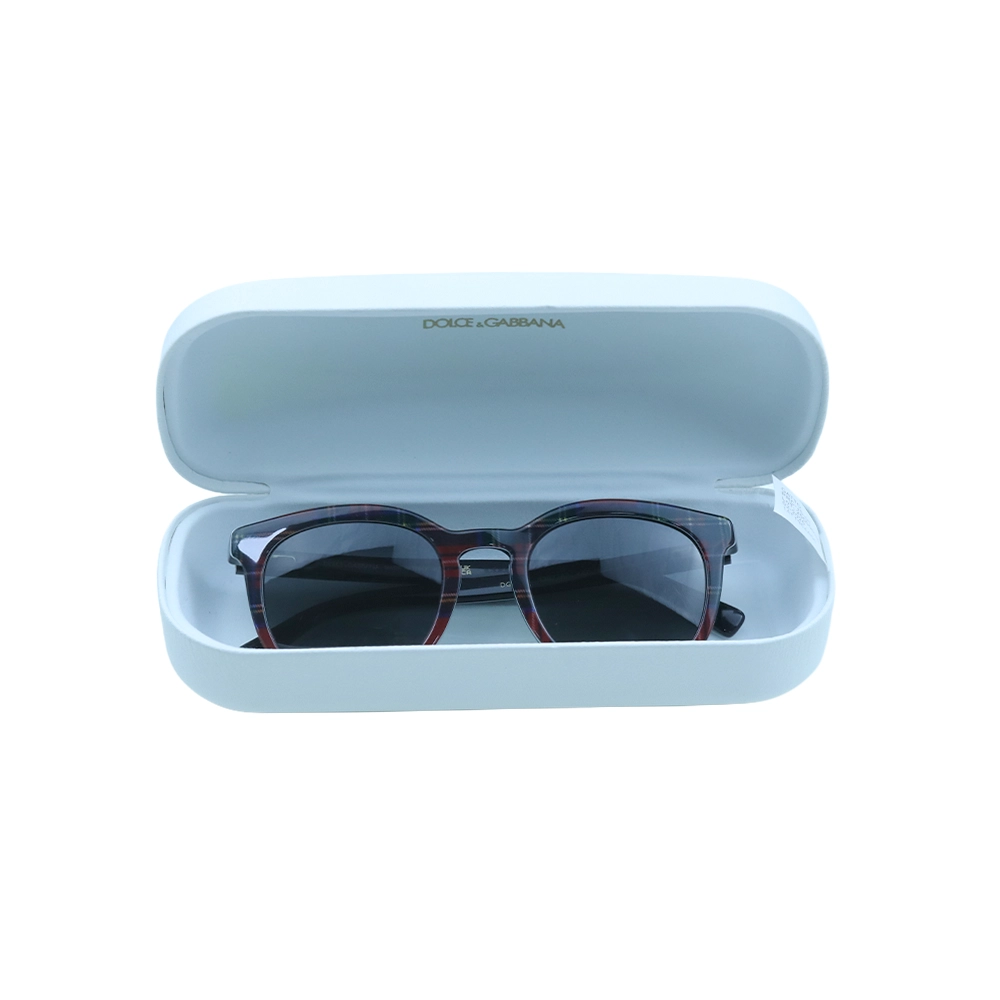 Add a modern designer touch to your accessories with these Dolce & Gabbana round-frame sunglasses. Crafted in Italy from premium acetate, they feature a stylish multicolor frame with a subtle transparent effect that gives them a contemporary and distinctive look. The round silhouette is paired with tinted lenses that provide comfortable sun protection while enhancing the fashionable design. Straight arms and curved tips ensure a secure and comfortable fit, making these sunglasses perfect for everyday wear or holiday styling. They come with a protective case for safe storage.