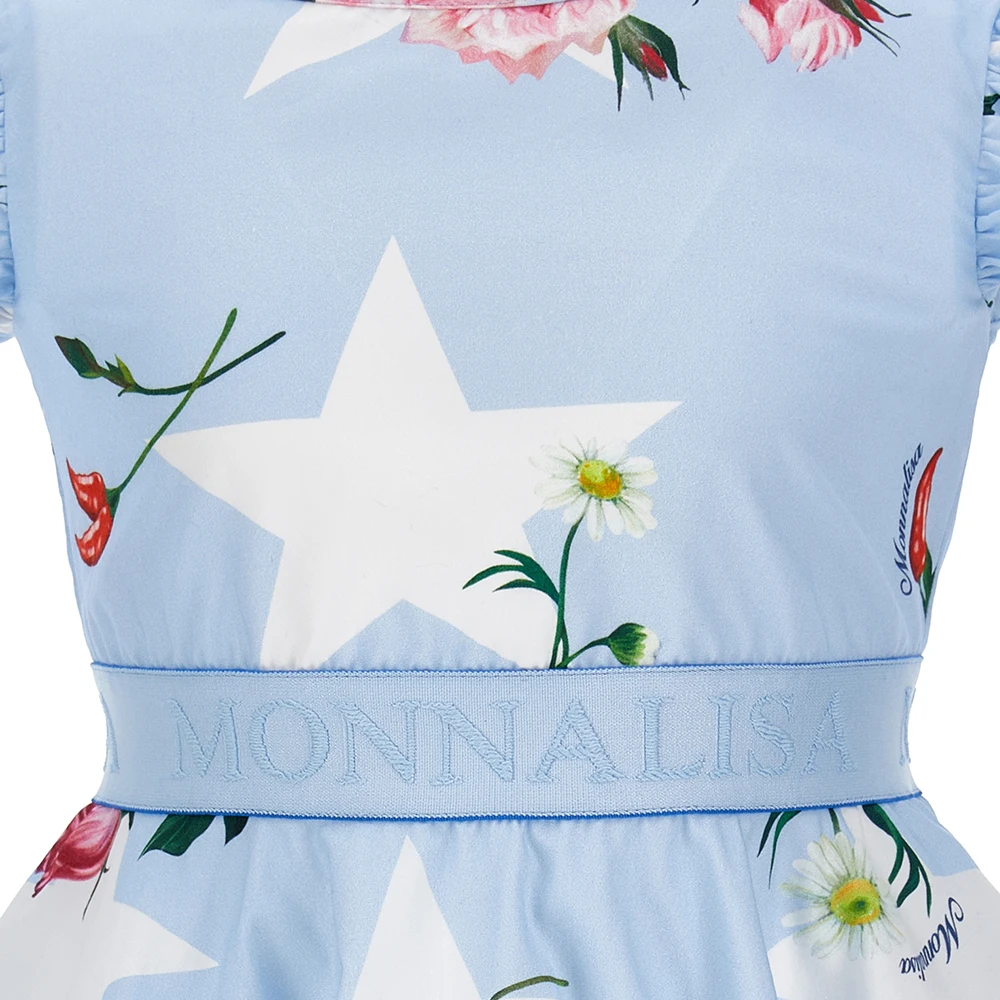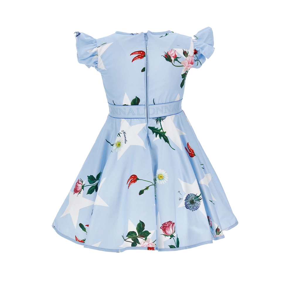 Girls Sky Blue Floral Print Poplin Dress