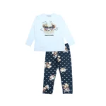 Showcasing Monnalisa’s enchanting aesthetic and love for playful nature-inspired designs, this charming set is perfect for everyday elegance. The long-sleeve T-shirt features a classic round neckline and an adorable teddy bear face motif, bringing a sweet and whimsical touch to the look. Paired with matching black leggings, designed with a delicate heart pattern and teddy bear accents, this set combines comfort with standout style. The close-fitting silhouette and elasticated waistband ensure ease of movement while maintaining a snug, flattering fit, ideal for both casual outings and cozy days.