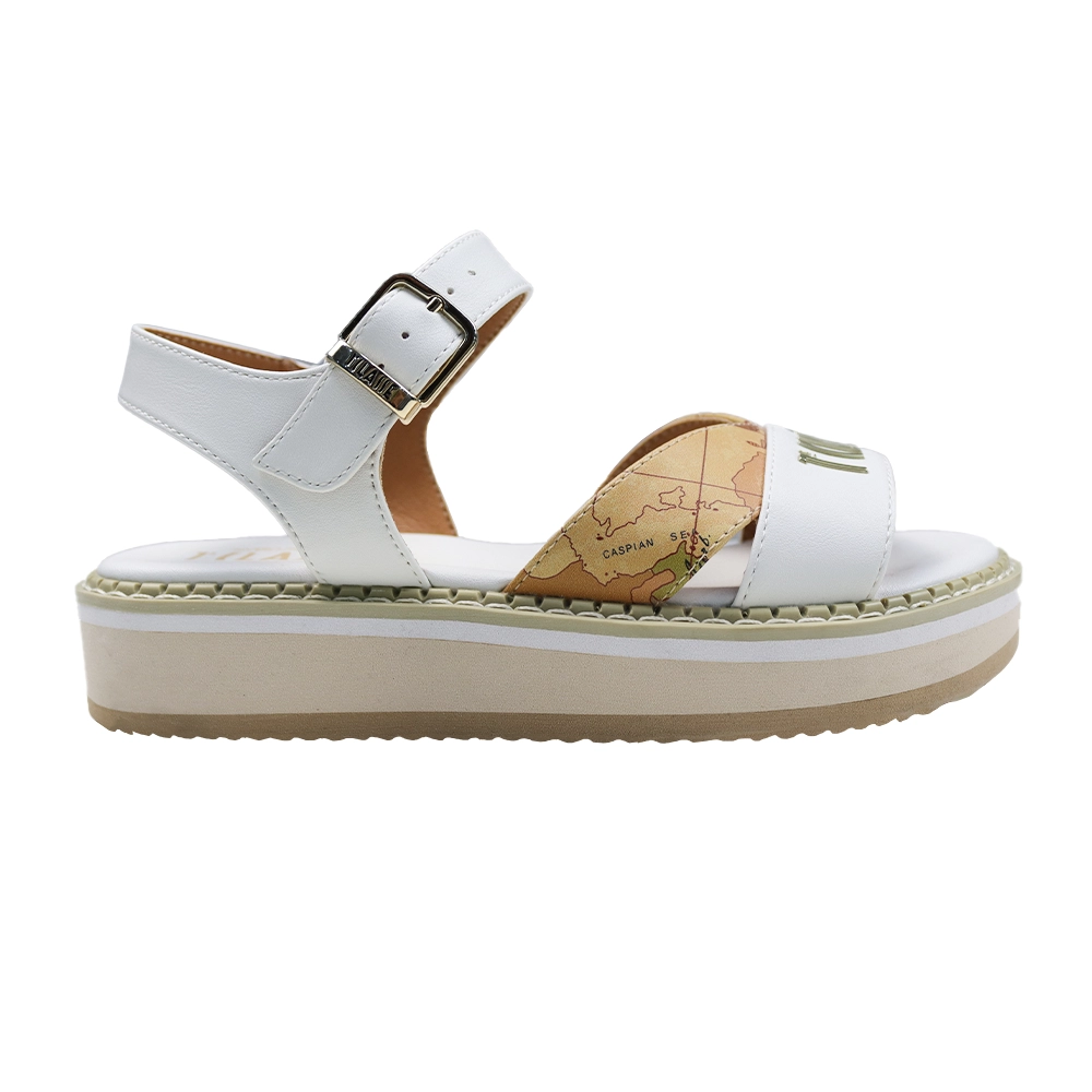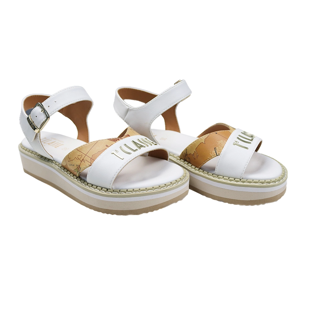 Girl’s White and Beige Geo Print Sandal