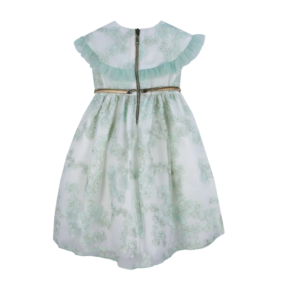 Girl’s White and Green Floral Embroidered Dress