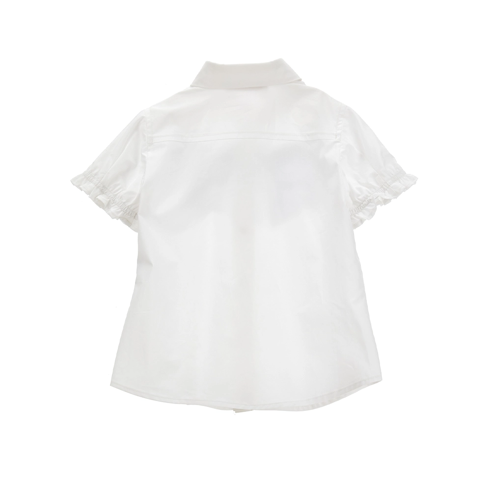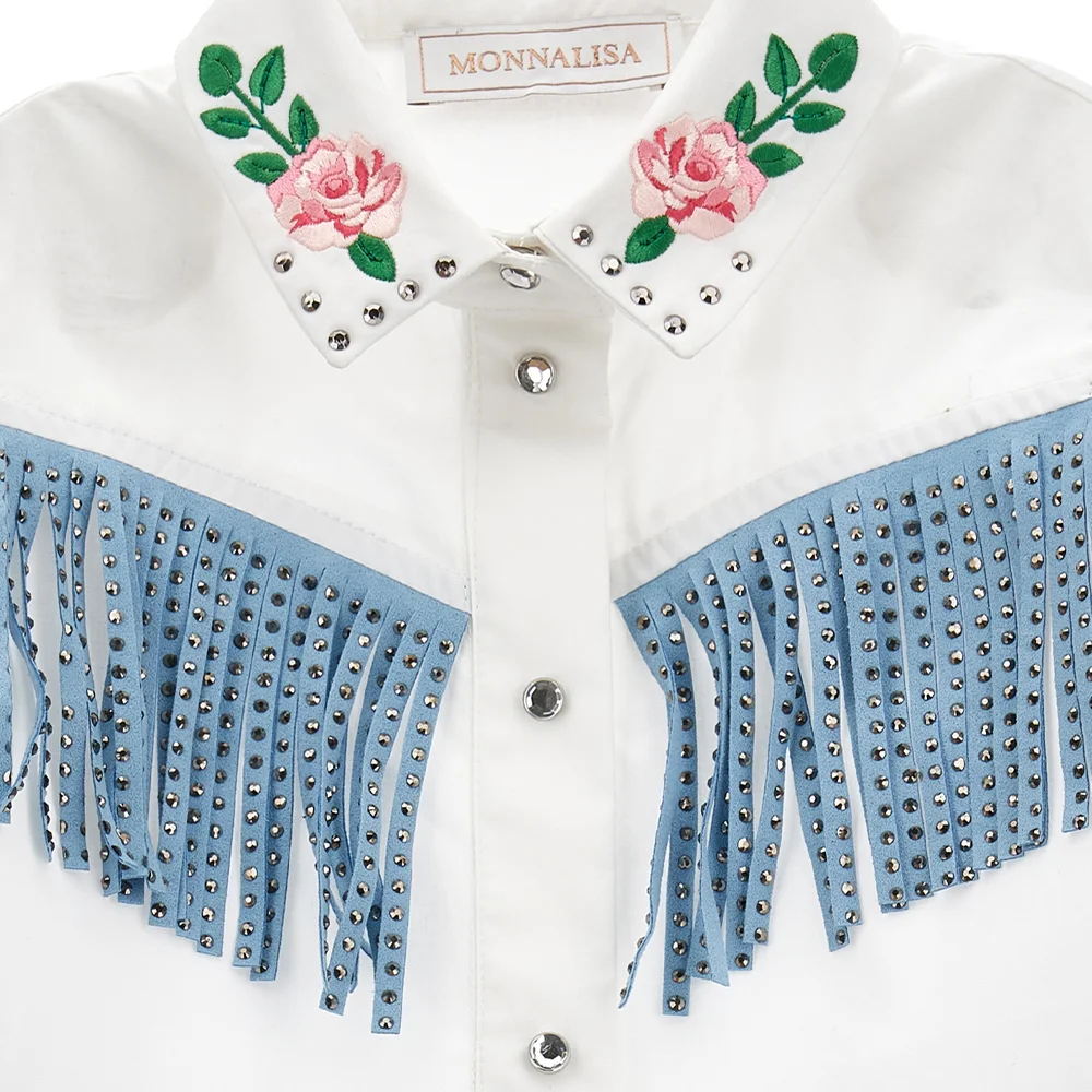 Girls White Cotton Floral Shirt