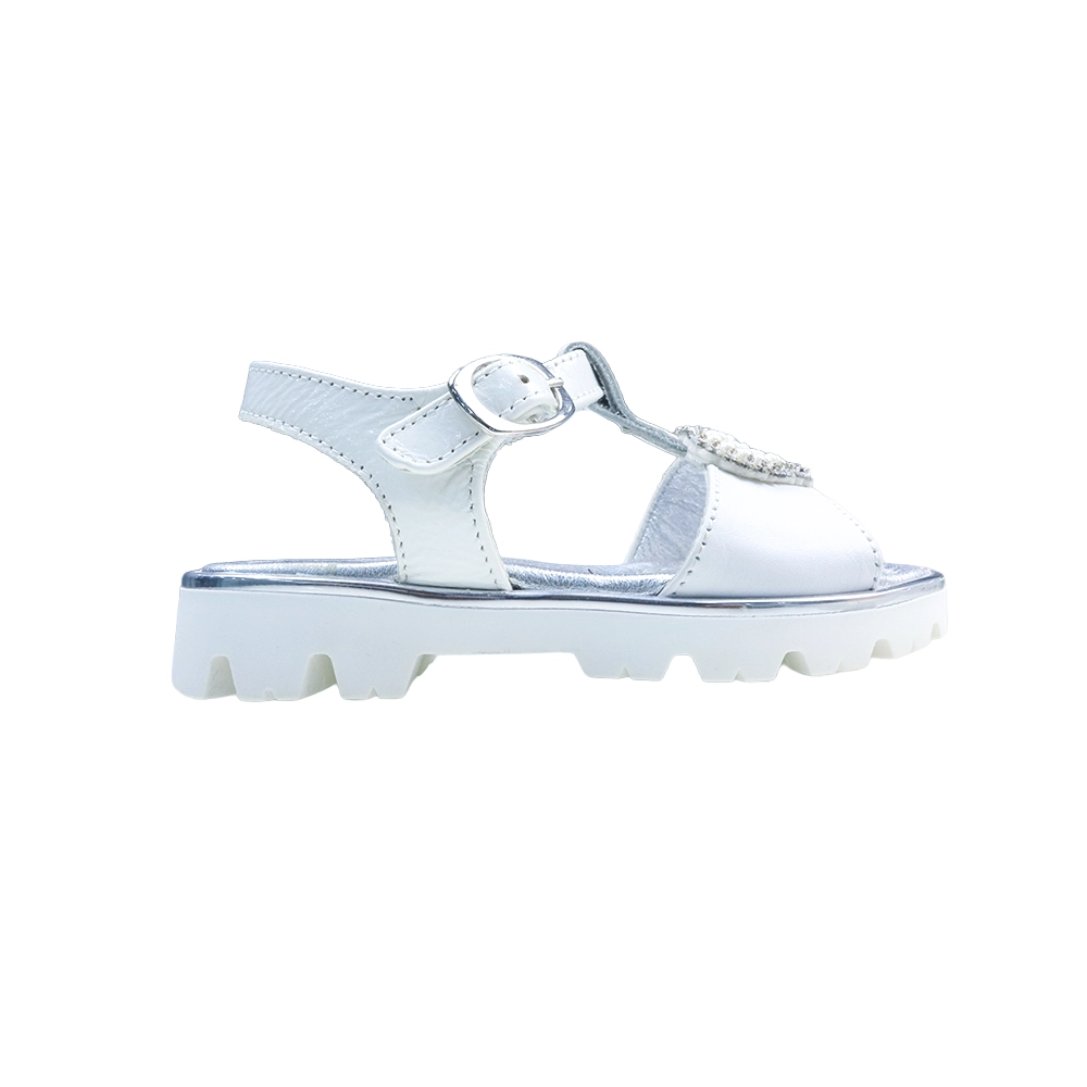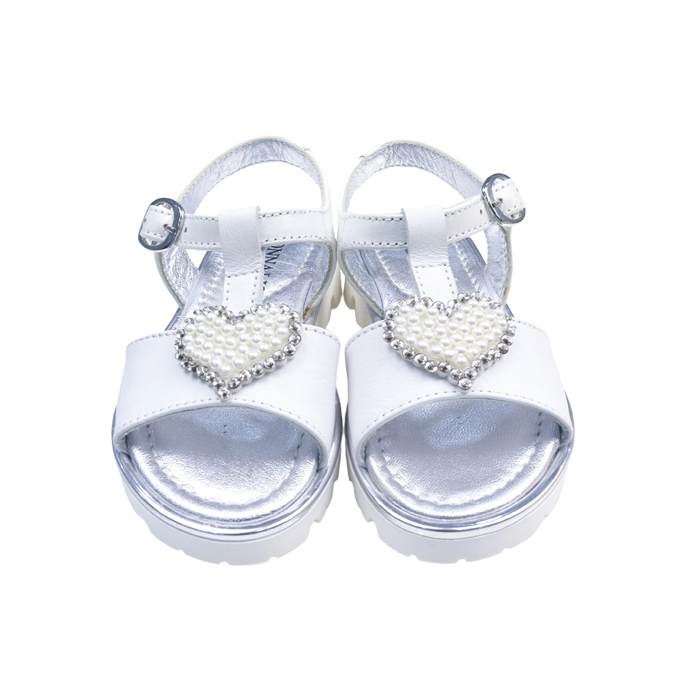 Girls White Leather Heart Sandals
