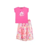 Twirl into fabulousness with this charming AIGNER Junior Girls Printed Skirt Set. Designed for playful elegance, the skirt features a vibrant all-over print that brings joyful movement to every pirouette and playground adventure. Paired with a matching pink T-shirt featuring the signature AIGNER logo print on the chest, this coordinated set blends everyday comfort with designer flair.