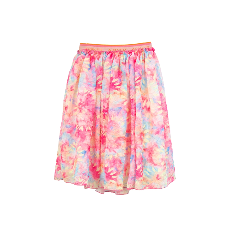 Twirl into fabulousness with this charming AIGNER Junior Girls Printed Skirt Set. Designed for playful elegance, the skirt features a vibrant all-over print that brings joyful movement to every pirouette and playground adventure. Paired with a matching pink T-shirt featuring the signature AIGNER logo print on the chest, this coordinated set blends everyday comfort with designer flair.