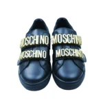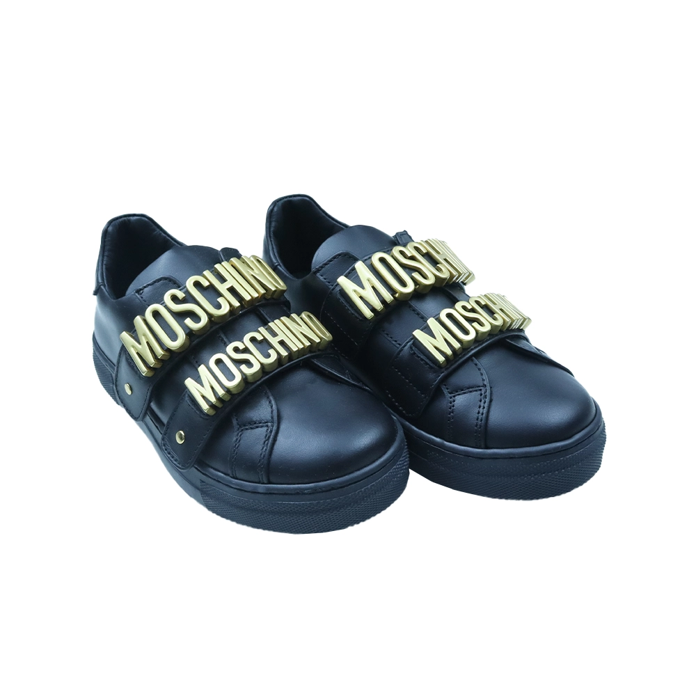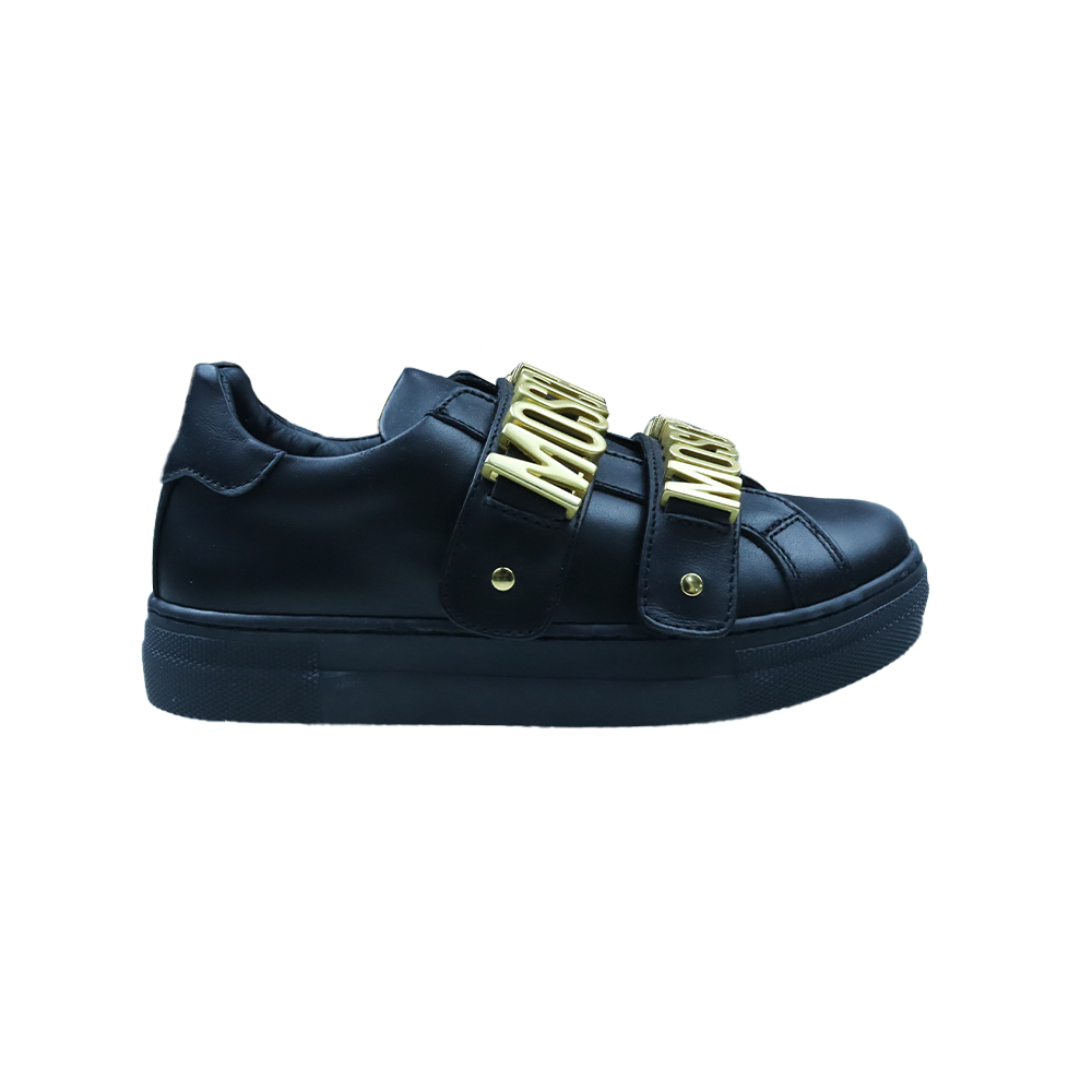 Kids Black Leather Logo Shoes