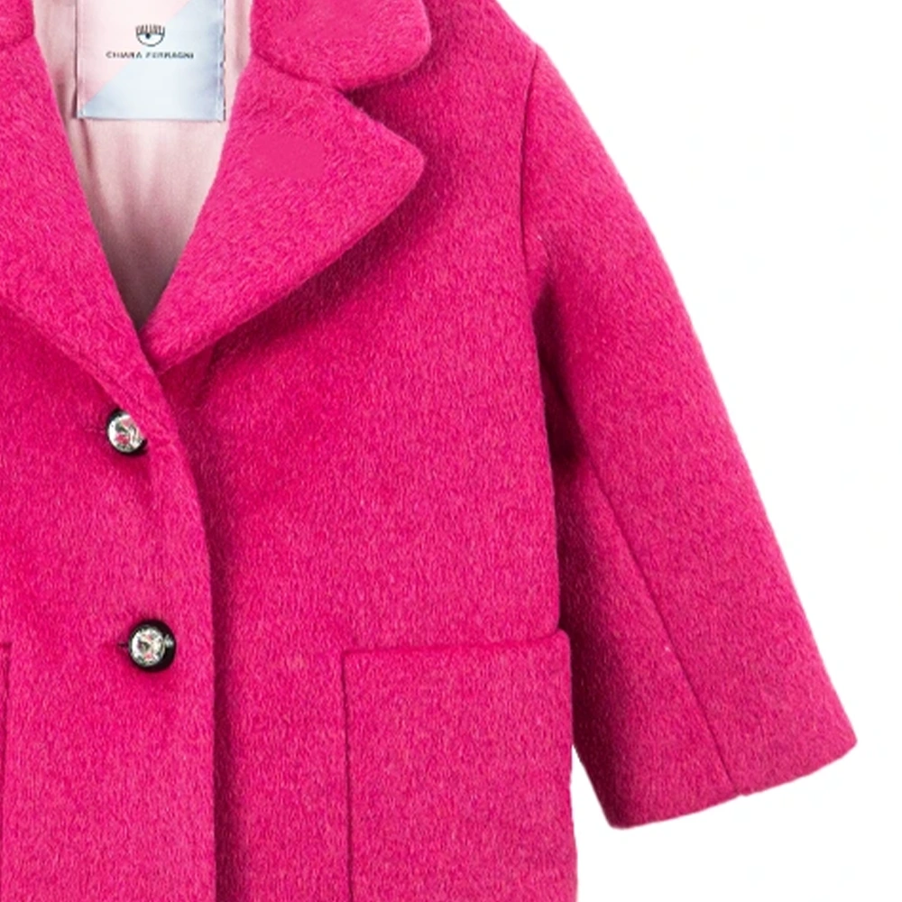 Kids Fuchsia Pink Logo Plaque Single Breasted Coat