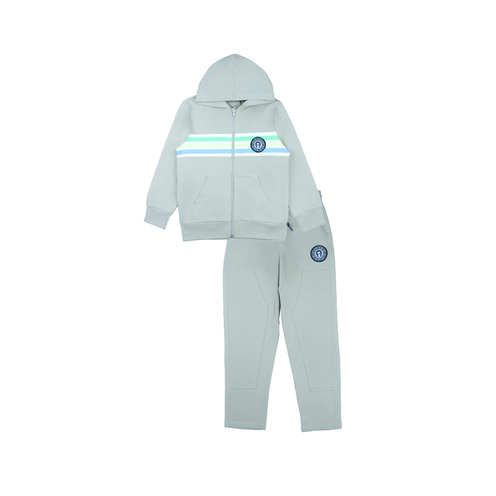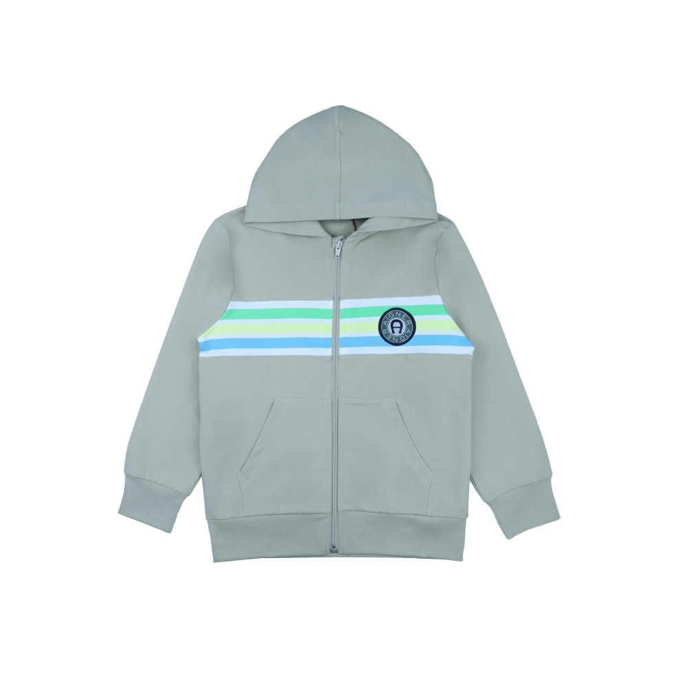 Keep your little one comfortable and stylish with this modern AIGNER kids 2-piece tracksuit set. Crafted from soft, high-quality fabric, the set includes a zip-up hooded sweatshirt and matching joggers, perfect for everyday wear or relaxed outings. The hoodie features a full front zip, practical front pockets, and a clean design accented with horizontal stripe detailing across the chest and a subtle AIGNER logo badge for a signature finish. The joggers are designed for ease of movement, with a relaxed fit, elasticated waistband, and functional pockets, completed with a coordinating logo patch for a cohesive look.