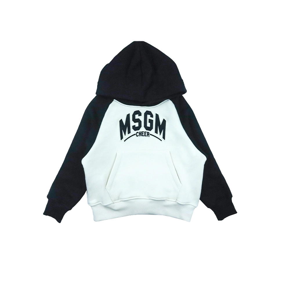 This sporty MSGM 2-piece set is designed for everyday comfort and style. The hooded sweatshirt features a classic kangaroo pocket, elastic ribbed cuffs, and a logo on the chest for a modern, athletic look. Finished with an elastic band, it offers a relaxed and comfortable fit. The matching black joggers complete the outfit with a stretch waistband and adjustable drawstrings, practical slit pockets, and a logo print on the leg. Perfect for casual wear, playtime, or relaxed outings.