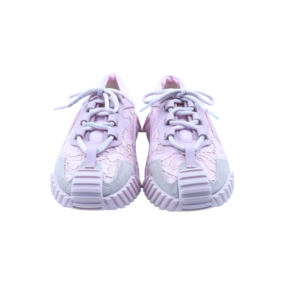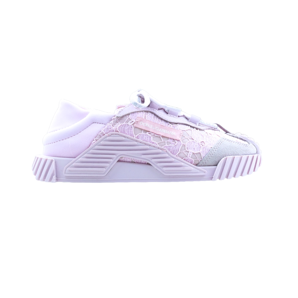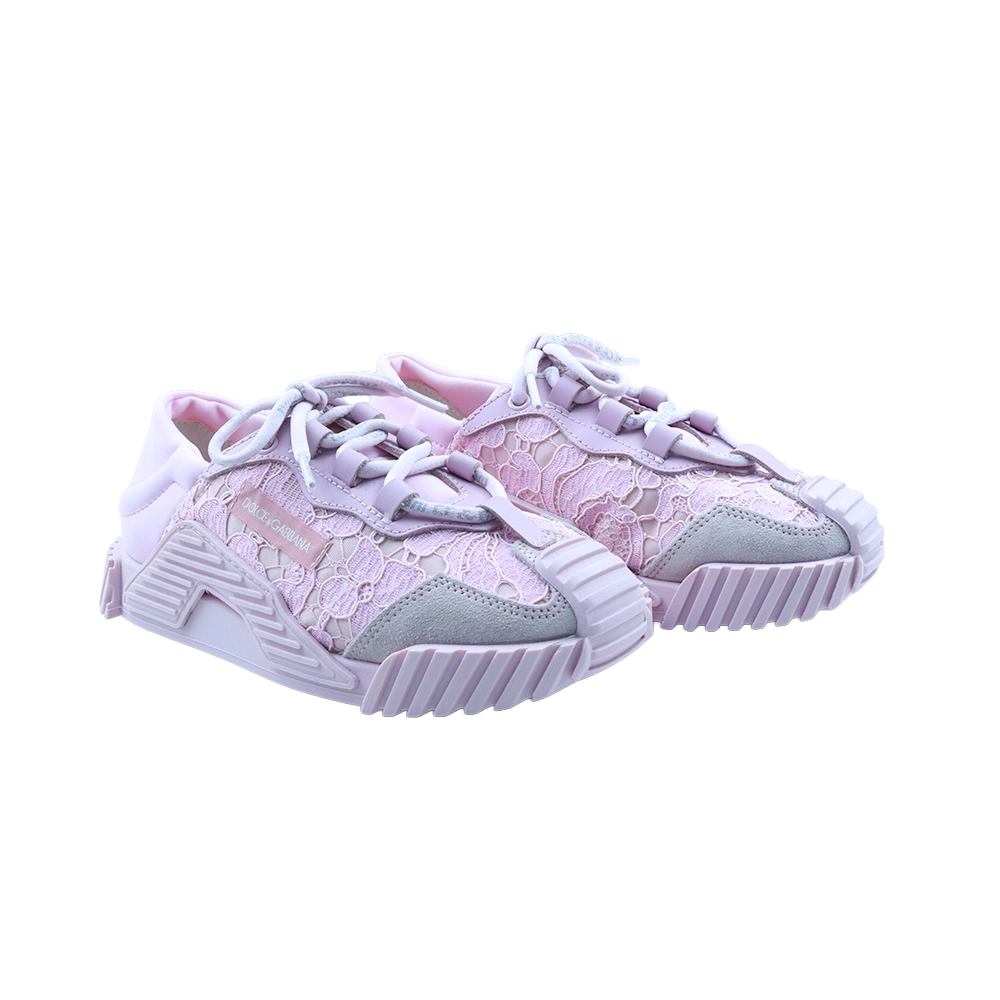 Elevate your everyday style with the Dolce & Gabbana NS1 low-top sneakers, a perfect blend of elegance and streetwear edge. Crafted in Italy, this standout design features delicate floral lace panels set against smooth chalk white leather for a feminine yet contemporary finish. Designed with a classic round toe and front lace-up fastening, these sneakers offer both comfort and secure fit. Signature details include a logo patch at the tongue, a side logo accent, and a branded insole. The ridged rubber sole enhances grip and durability, making them as practical as they are stylish.