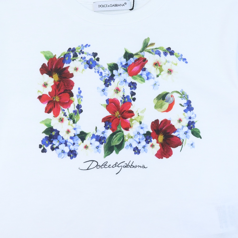 This Dolce & Gabbana T-shirt brings a touch of heritage style to your little one’s wardrobe. Crafted in Italy from soft cotton, it offers breathable comfort for everyday wear. The classic design features a versatile crew neckline, short sleeves, and a straight hem for easy styling. A beautiful, flowered logo print on the front adds a distinctive statement, reflecting the brand’s iconic aesthetic and rich inspiration.