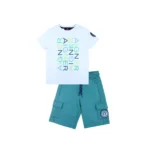 Boy’s White logo Shirt & Blue Cargo Shorts Set
