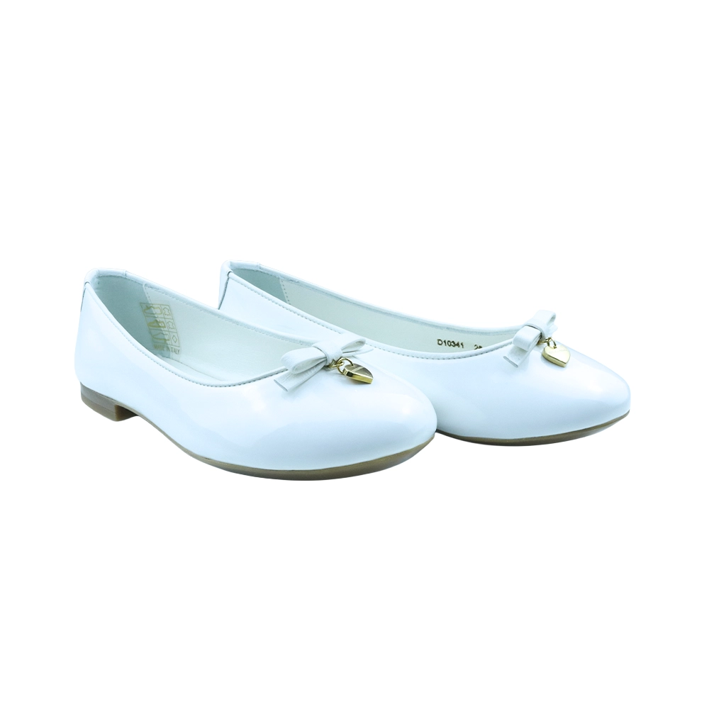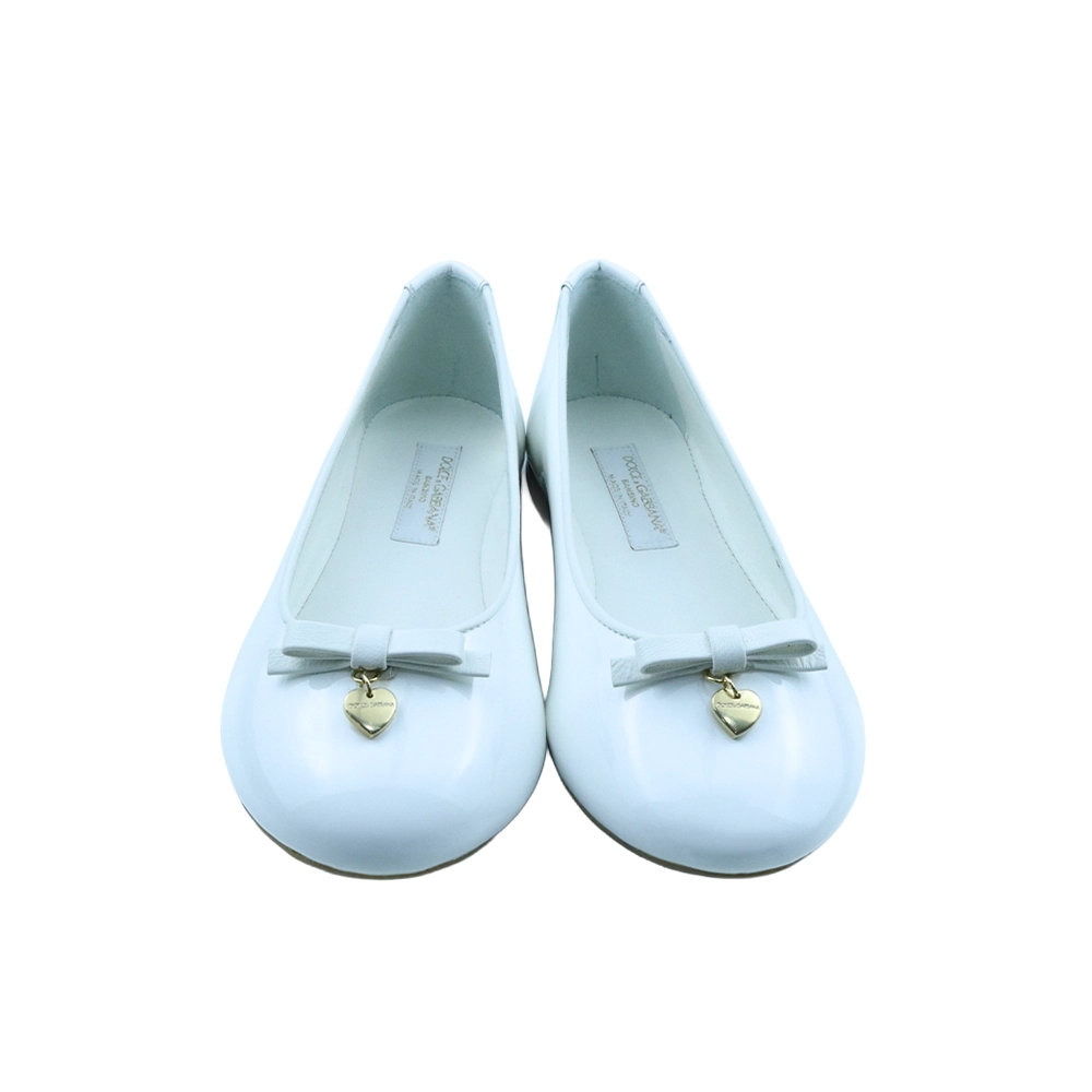 Refined and timeless, these Dolce & Gabbana Kids ballerina shoes add a graceful finish to your little one’s outfit. Expertly crafted from white calf leather with glossy patent accents and soft lambskin details, they showcase the brand’s commitment to premium craftsmanship. Designed with a classic round toe, they are adorned with a delicate bow and an engraved logo charm for a subtle signature touch. The branded insole ensures comfort, while the flat rubber sole provides flexibility and everyday practicality. Perfect for special occasions or elegant daily wear.